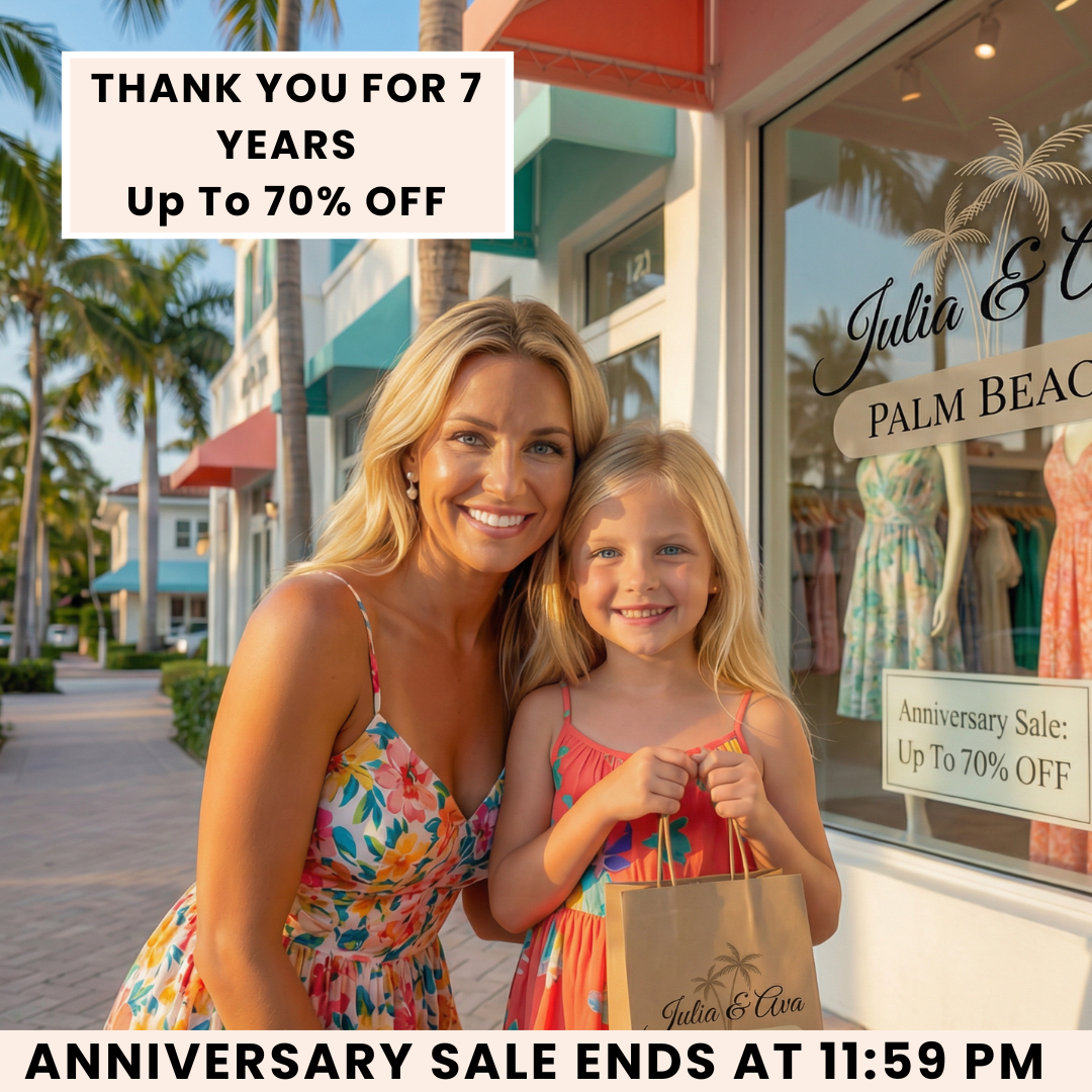 After 7 beautiful years as a small mother-daughter boutique in Palm Beach, we’re celebrating the journey with our Anniversary Sale.